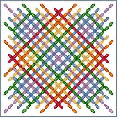 This design with the tattered edge brings to mind comfortable pajamas that are well past their prime but have not been discarded because they feel so good. The colors are bright and new, however. All whole stitches make this an easy design to stitch. The design is reminiscent of a real quilt.